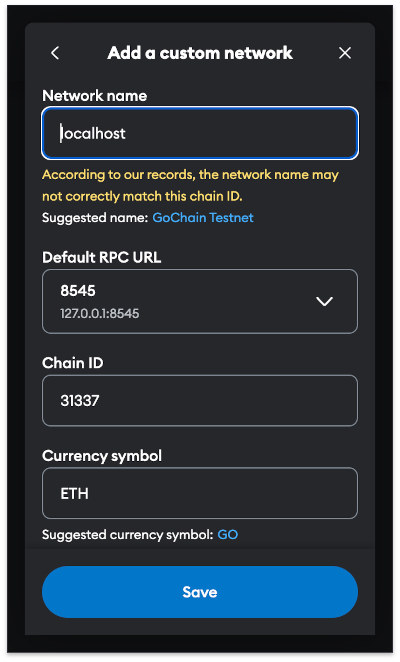 Next, click Metamask's network selector dropdown and click the Add Network button. Click Add a network manually and then provide the following information: